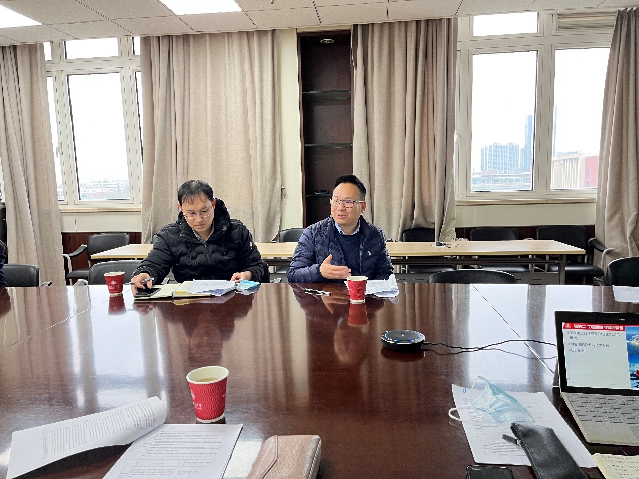 余龙围绕课程设计和教学模式与人文学院、凯原法学院的参会教师作教学思路探讨。课程拟分为人文海洋、社会海洋、自然与工程海洋三大主体部分,从海洋历史、海洋权益、船海工程建设等多维度培养学生对“大海洋”的整体认识,拓展学生综合研究视野。