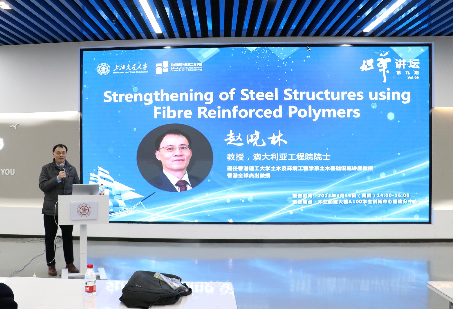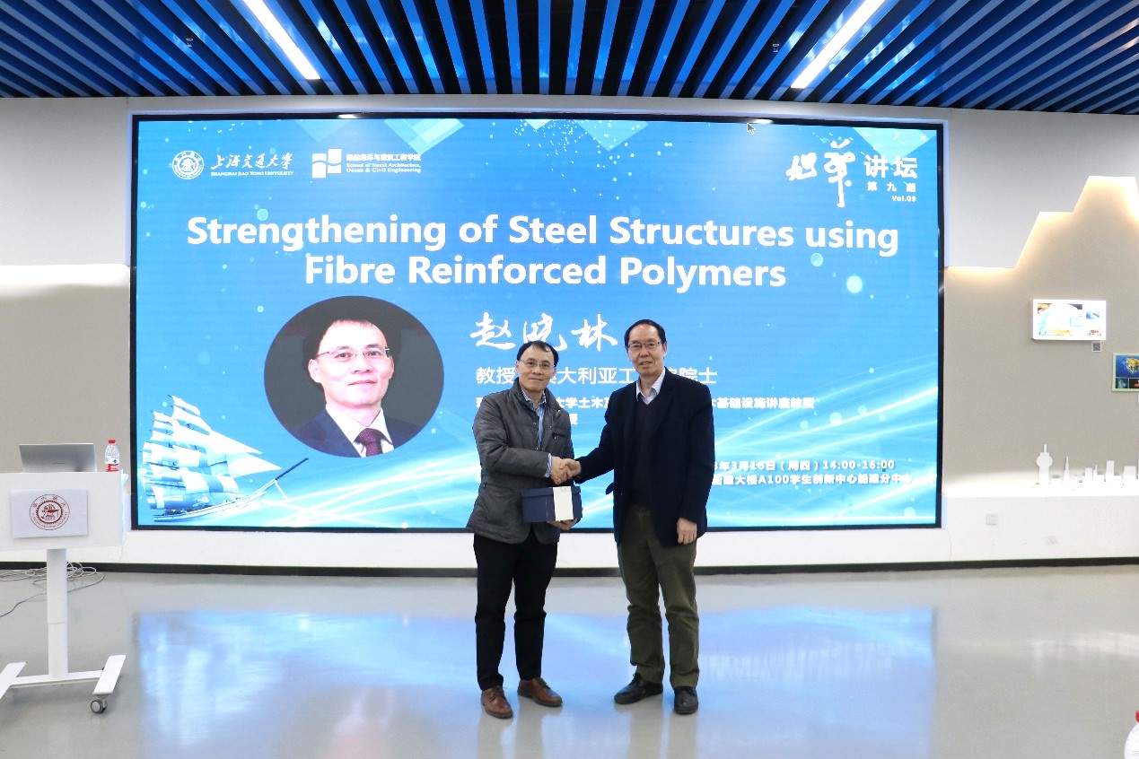 2023年3月16日下午,澳大利亚工程院院士、香港理工大学土木与环境工程学系讲座教授、香港全球杰出教授赵晓林校友回到母校禁漫 ,做客禁漫 第九期“旭华讲坛”,为船建师生做了题为 “Strengthening of Steel Structures using Fibre Reinforced Polymers” 的精彩报告。本次报告由土木工程系副主任张大旭教授主持,吸引了逾百位师生参加。