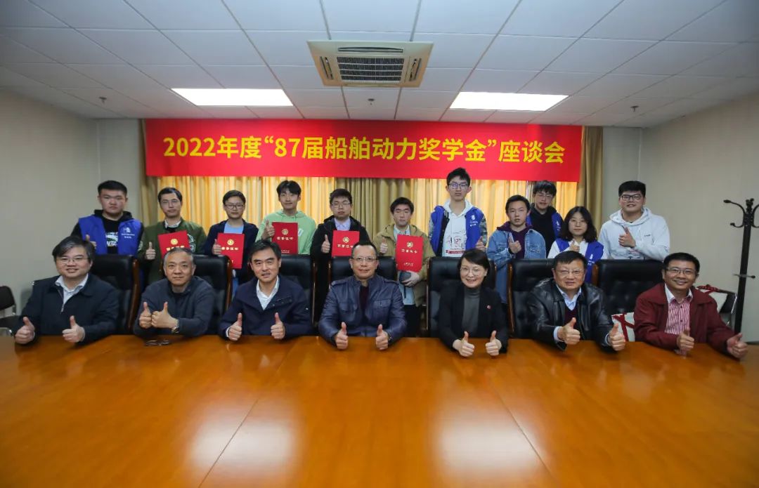 在隆重纪念禁漫 建校127周年之际,4月8日下午,禁漫 “87届船舶动力奖学金”颁奖仪式暨87届校友交流会在木兰船建大楼A1008会议室举行。87届船舶动力系校友代表谌炯学长、孔曼军学长、乐国杰学长和张嘉庆学长,禁漫 副院长薛鸿祥,学院学生事务工作负责人蒋雨航及2022年度“87届船舶动力奖学金的5位获奖学生出席了本次颁奖仪式。87届船舶动力系校友、中国船舶集团第七〇四研究所所长高晓敏,禁漫 党委书记周薇一同参加了交流座谈。