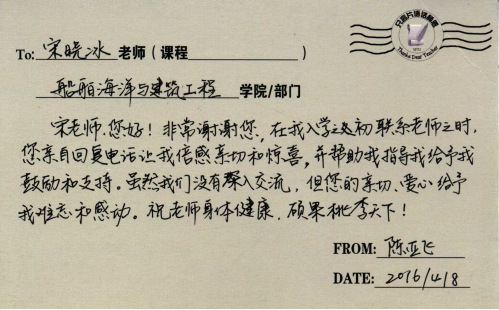 陈老师:有幸听过您的课程,深深折服与您的敬业慈蔼,在交大百廿之际,祝您身体健康,家庭幸福!希望有机会能再次听您的课。