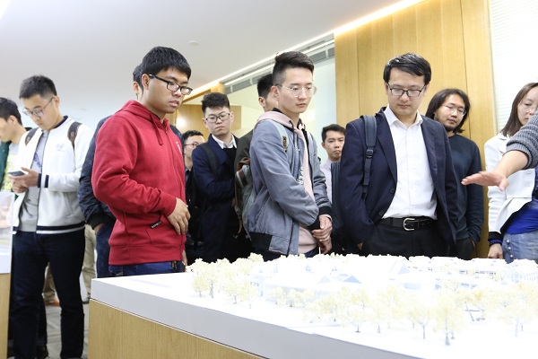 在公司第七设计院,林钰麒带领大家进行参观,让同学们对建筑设计院所的工作氛围有了较为直观的认识。在会议室,第七设计院相关人员对公司总情进行了较为全面的介绍与展示。公司宏大的企业规模、丰富的生产管理经验、广阔的业务领域、创新性的业务项目与资深成熟的事业部,给来访的老师与同学留下了深刻的印象。