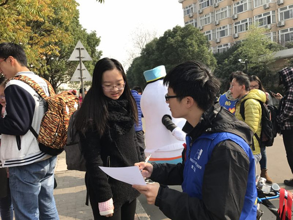 12月1日,正值“世界艾滋病日”,青马党校爱国班第九组协助船建团学,开展了以艾滋病知识宣传为主题的“我眼中的中国”社会实践活动。在船建团学组织下,组员们积极参与了活动的前期准备过程,得到了团学成员们的欢迎与认可。活动过程中,组员们在东区转盘邀请并引导过往同学们填写了关于艾滋病相关知识的调查问卷,并耐心细致地普及了相关知识。通过此次活动,组员们不仅学习了艾滋病的相关知识,也进一步体会到中共党员应当起到先锋模范带头的作用。
