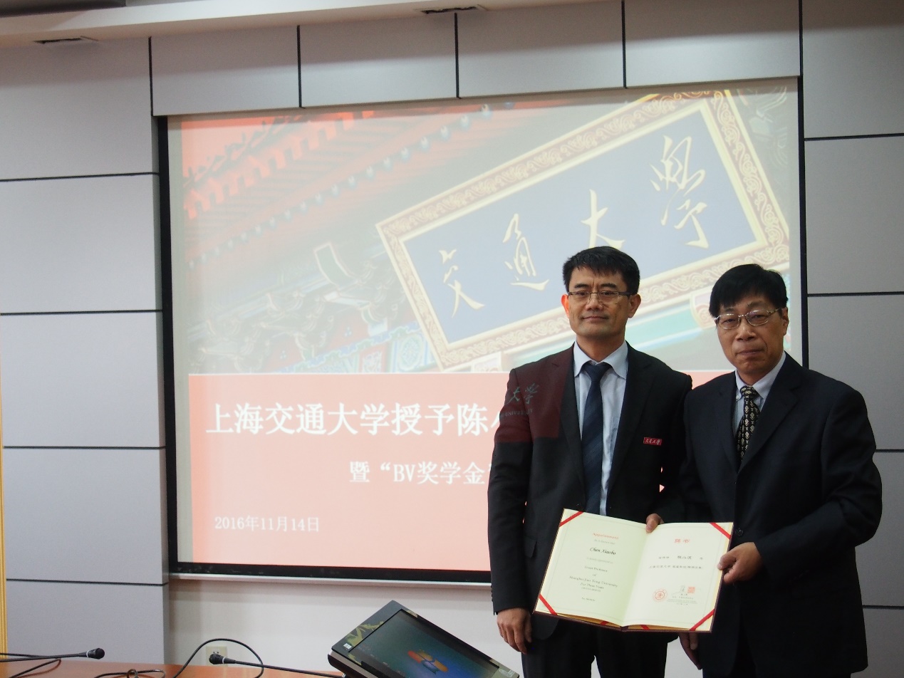 11月14日上午,禁漫 授予陈小波客座教授仪式暨“BV奖学金”颁奖仪式在木兰船建大楼A1002室举行。BV总部国际合作部部长、亚太区深水技术中心总经理陈小波博士,BV上海先进技术研究中心技术总监周才民,禁漫 党委书记张卫刚,副院长万德成,党委副书记杨建军,以及四名获奖同学出席了此次颁奖仪式。会议由万德成主持。