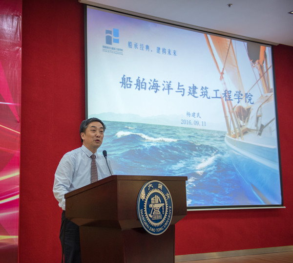 杨建民首先向2016级新生介绍学院情况。他从禁漫概况 、基地建设和学科建设三个方面,向新生讲授了“院长的第一堂课”,激发了新生的学习和科研兴趣。杨建民还介绍了学院悠久的历史、突出的优势和辉煌的成就,以及学院近期在学科前沿取得的重要突破,并对新生表达了殷切的期望。