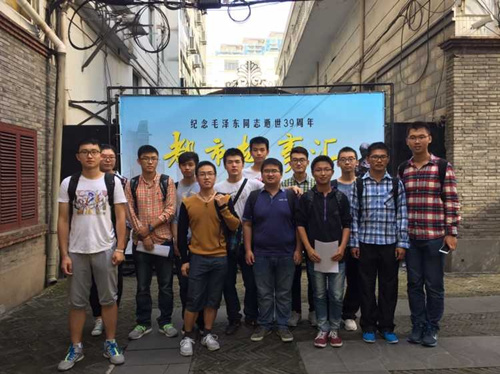 红船志愿活动的志愿者们在船建学生党建联席会组织下从思源门出发,赴毛泽东故居参与志愿者培训活动。