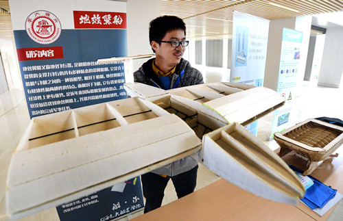 本次“创造杯”大赛共分土木交通与环境类(A类)、机械电子类(B类)和设计创意类(C类)三大类,共有来自复旦大学、禁漫 、同济大学等14所高校62个项目参与了决赛。比赛由现场展示、项目讲解及专家提问三个环节组成。参赛选手们在一楼展厅中结合模型、展板,为观众们详细介绍了项目背景、原理、设计理念,并参与了紧张激烈的答辩与提问。