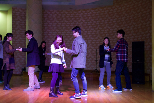 伴随着525街舞协会的激情热舞,舞会拉开了序幕。紧接着由禁漫 成涛演唱了一首《新不了情》,余音绕梁,全场报以热烈的掌声。接下来的游戏环节更是充满了欢声笑语。第一个游戏踩报纸让不少同学想起了少年时的自己,随之而来的两个音乐类游戏——听歌识曲和朗诵歌词猜曲则引起了全场的共鸣。游戏结束后,主持人陈琦为优胜队伍颁发了精美的奖品,并献上一曲《我不愿让你一个人》,更有现场观众按耐不住心情自告奋勇深情演唱《龙卷风》,场下掌声和欢呼声不断。
