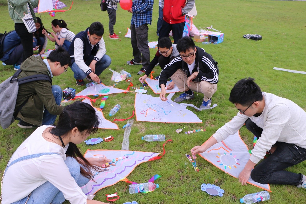 本次活动共吸引了全校八十余名同学参与。活动伊始,同学们就通过简单活泼的分组小游戏迅速熟悉起来。随后,大家共同协作,发挥特长,用手中的画笔绘出栩栩如生的图案,DIY自己的个性化风筝。风筝创作环节告一段落,同学们还进行了创意风筝的投票,并借着春风将手中的风筝放飞蓝天,让风筝载上自己的梦想在天空翱翔。随着阴郁的天空飘起了小雨,活动也进入了尾声,参与同学们带着自己DIY的风筝共同合影留念。