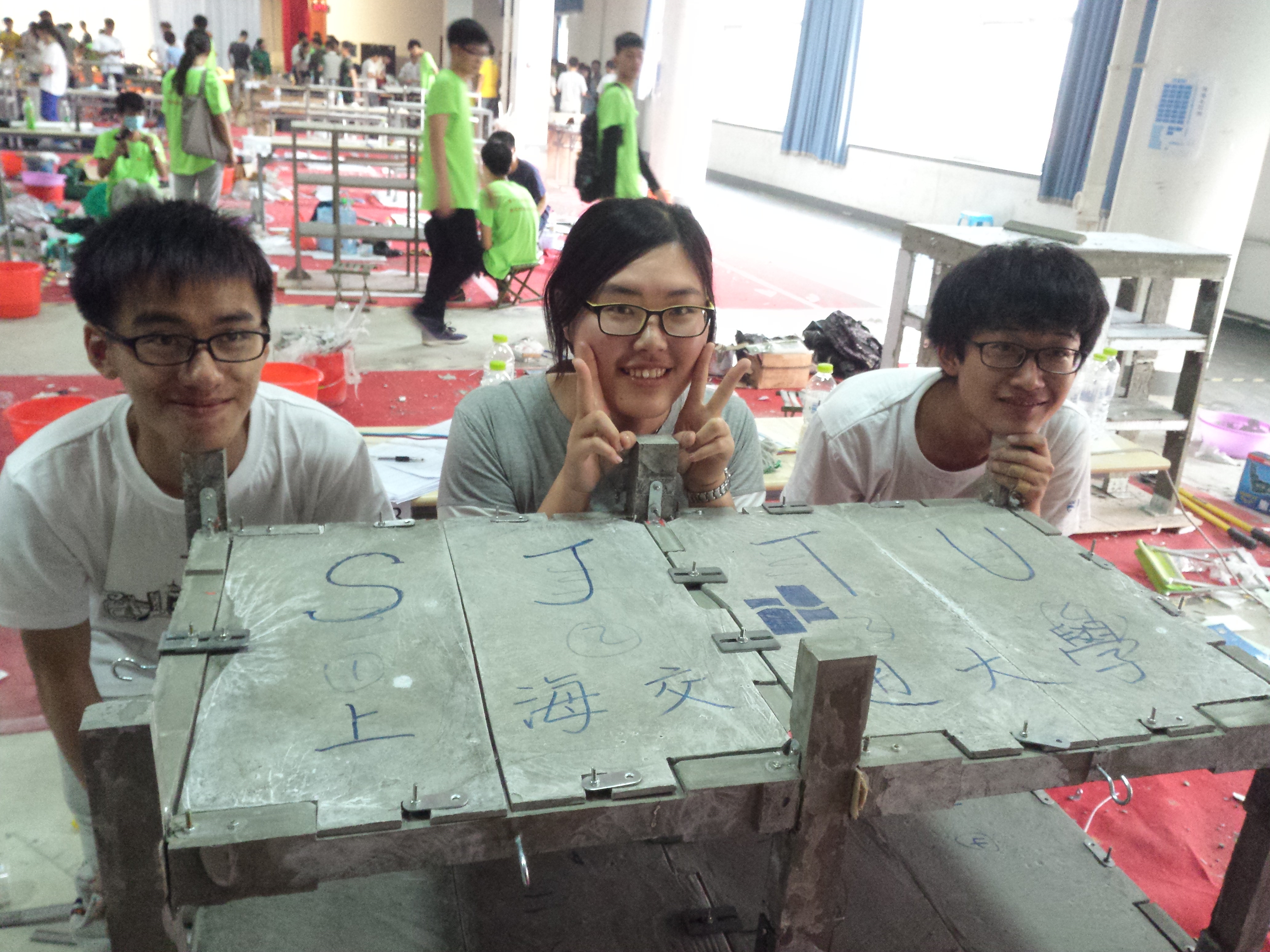 禁漫 代表队在本次比赛中以锻炼学生队伍为主,选派了土木工程专业低年级学生,表现却令人十分惊喜。吴晓昂、朱婷、张宜杰团队在赛题准备阶段试验发现梁柱节点内力较为集中,是整个结构中最为薄弱环节,因此在设计中让梁柱节点处界面局部加大,同时在楼板与梁的搭接方式中别具特点,不使用单一构件,保证了结构的整体性。崔琦、蒙婧玺、徐宇冉团队则在模型制作工艺上别出心裁,借鉴局部现浇方法,将模具单元化,分为纵向两榀框架与横向梁,对模具单元进行提前拼接和浇筑,有效地降低了拼接难度。最终两支队伍凭借模型质量轻、制作时间短、残余位移小的优良性能,在35支队伍中脱颖而出,获得第五、第六名。