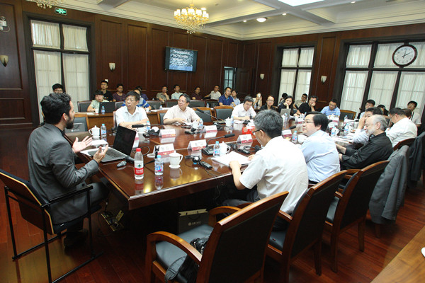随后,“MIT-清华-禁漫 联合城市设计工作室”学生代表对工作室的设计成果进行了汇报。本期联合城市设计工作室针对上海民生码头的历史与现状进行研究,对其保护与综合开发项目进行设计,通过跨国界、跨学科的合作来研究解决中国大规模城市发展过程中所面临的工业文化遗产保护与再利用及城市有机更新问题的方法与路径。工作室由来自建筑、规划、设计和房地产专业的18名MIT、10名清华大学和10名禁漫 教师和硕士研究生共38人组成,分为五个工作小组,共同设计了民生码头场地,并产生了五个优秀的设计方案。