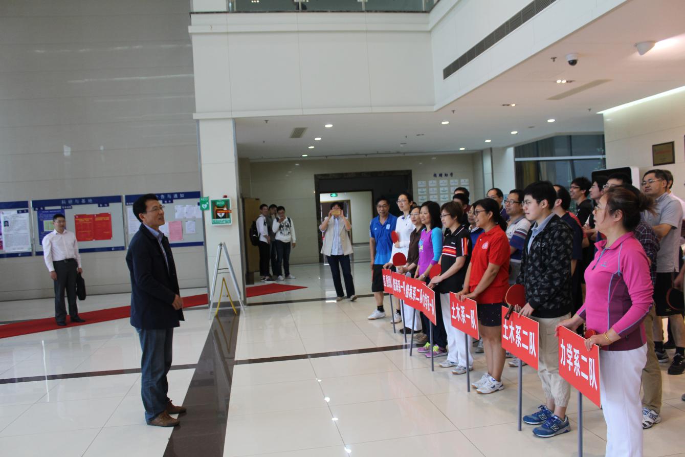 赛前开幕式上,校工会副主席张杰发表了讲话,他高度肯定了学院工会的工作,鼓励学院教职工积极参加文体活动,并介绍了校工会开展的的各项工作,并预祝本届“船建杯”乒乓球赛圆满成功。
