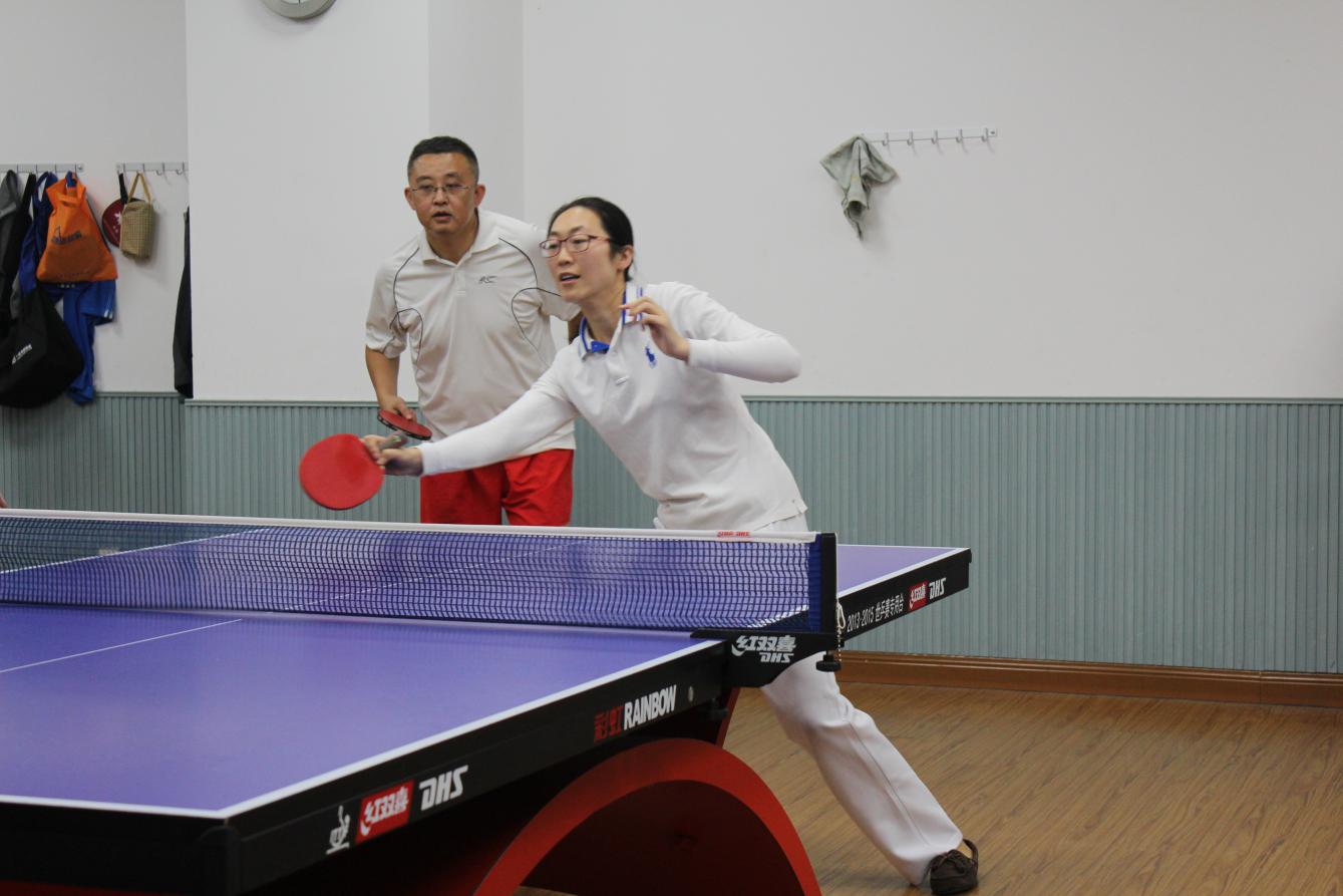 学院党委书记张卫刚、副院长赵金城作为参赛队员参加比赛活动,裁判长李四平老师根据赛前定制的规则认真裁判,使得比赛有序进行。比赛分为男单、混双、男双,在小组循环比赛中,各队队员强烈的团队荣誉感使得比赛的精彩瞬间不断涌现。