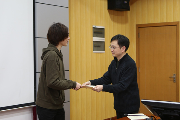 研究生的友情,增进了对中国文化的理解。报告会结束后,项目负责人张新曙为四名日本交流生颁发了结业证书并表示祝贺。