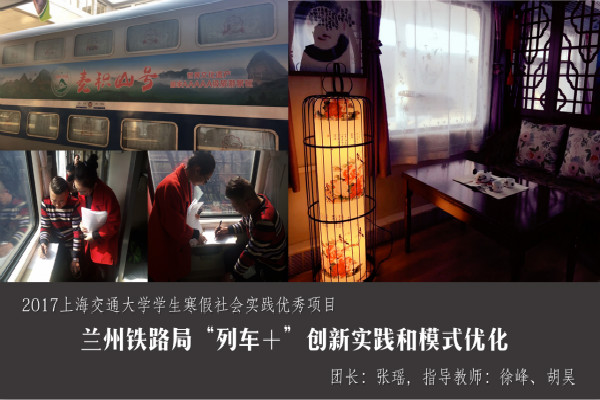 学生结合专业特点,关注社会民生发展。由徐峰、胡昊老师指导的“兰州铁路局‘列车+’创新实践和模式优化”社会实践深入甘肃省兰州市,对品牌列车的示范案例“麦积山号”、“兰州旅游号”进行了实地调研。在一个月的时间中,团队通过对列车上乘客的问卷调查和对列车员及客运段负责人专访,分析“列车+”创新模式的优势与不足,并提出相应对策建议,以期优化“列车+”模式,推动客运转型升级。
