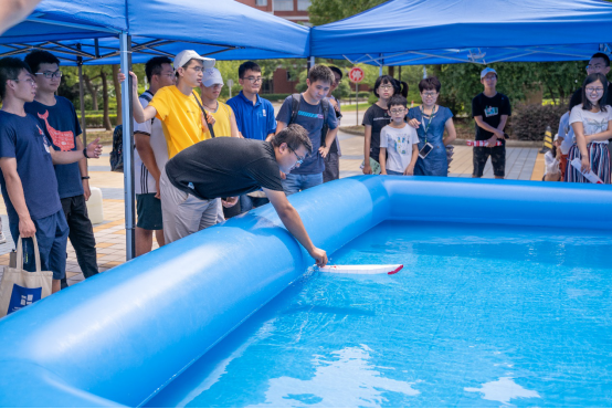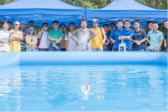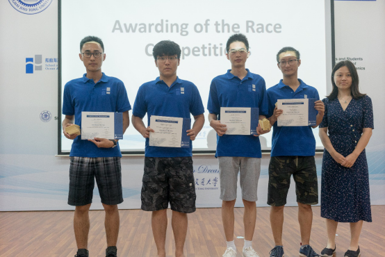 同时,为了让学员们互相增进了解,将理论融入实践,暑期学校首次举办了船模竞速赛。学员们自行组队,每组在一周内利用课余时间分别制作一艘限重船和一艘无限制船,并于7月31日下午举行了竞速比赛,邀请了浙江大学白勇教授、禁漫 余龙、冯正平、顾解忡三位专家老师,以及全国海洋航行器大赛获奖学生于特担任评委。每条船的船型设计满分为20分,竞速成绩满分为30分,根据规则评选出了一等奖团队(Outstanding Winners )2支,二等奖团队(Meritorious Winners)3支和三等奖(Honorable Mention)团队5支。