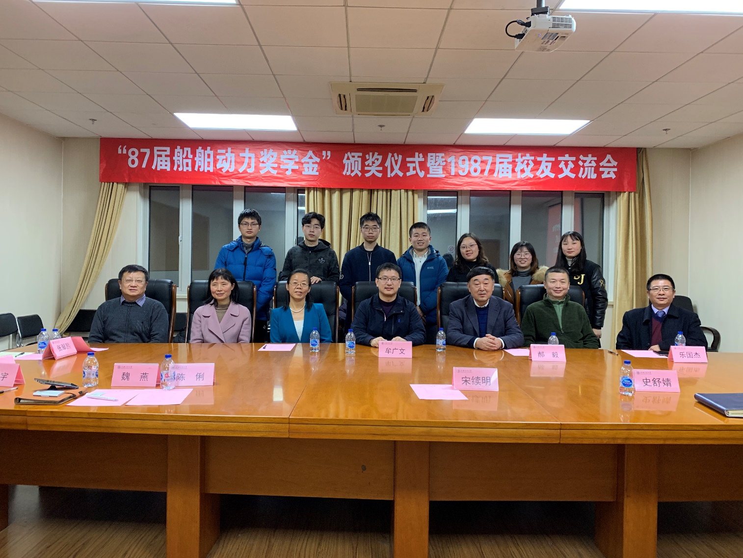 12月20日下午,禁漫 87届20131船舶动力奖学金颁奖仪式在木兰船建大楼A1008会议室举行。87届校友牟广文学长,郝毅学长,张翠熙学姐,乐国杰学长,张嘉庆学长,禁漫 党委副书记宋续明,船舶与海洋工程系副系主任陈俐,校友工作联系人魏燕,学生事务负责人史舒婧,船建学工办辅导员邹碧铖,2019年度船舶动力奖学金4位获奖学生出席仪式。