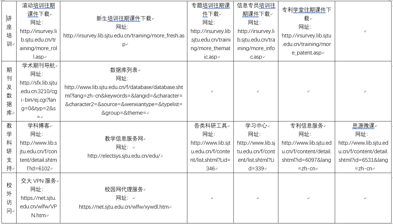 支部副书记、A1801092班班长金城在疫情期间独有收获。他将学校图书馆丰富的学习资源和使用方法深深挖掘了一遍。每学期学校图书馆都会定期举办各种各样的“图书馆资源与服务”的讲座,详细的介绍包括“图书查询与借阅”、“校外访问”、“数据库使用”、“小组学习室”和“文印与视听服务”等在内的图书馆服务,极大的方便了每一位交大人。疫情期间,金城把“讲座培训”栏目里各类讲座培训的课件统统学习了一遍,加持了不少新技能,再加上利用交大VPN和代理服务器、精准检索各数据库的文献,做起科研来可谓事半功倍。以下是他的学习分享: