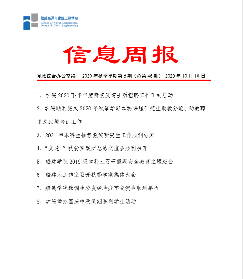 信息周报 2020年秋季学期第6期