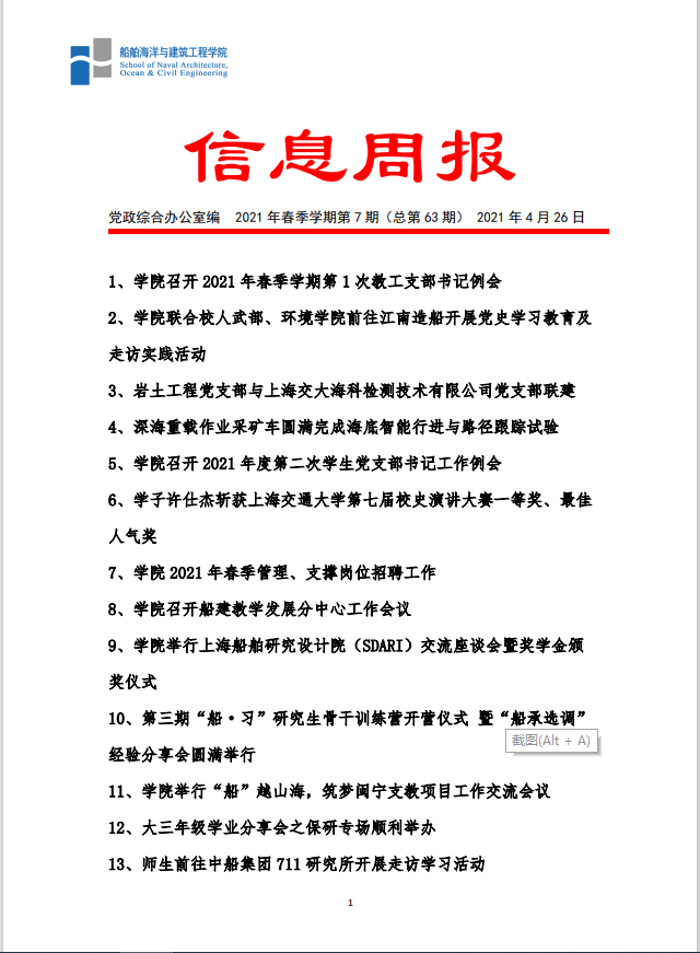 禁漫 信息周报 2021年春季学期第1期